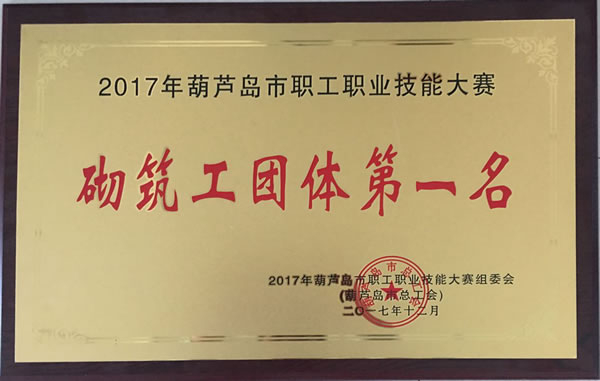 2017年12月7日,由葫蘆島市總工會(huì)主辦的“2017年葫蘆島市職工職業(yè)技能大賽頒獎(jiǎng)典禮”在葫蘆島市電視臺(tái)舉行。我集團(tuán)兩支代表隊(duì)不僅進(jìn)入了決賽階段,更是取得了喜人的成績(jī):榮獲團(tuán)體一等獎(jiǎng),孟憲鐵和周玉偉分獲砌筑工種個(gè)人賽冠、亞軍,集團(tuán)榮獲優(yōu)秀組織獎(jiǎng)。