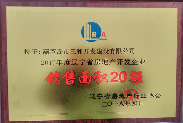 葫蘆島市三和開發(fā)建設(shè)有限公司榮獲“遼寧省房地產(chǎn)開發(fā)企業(yè)銷售面積20強(qiáng)”