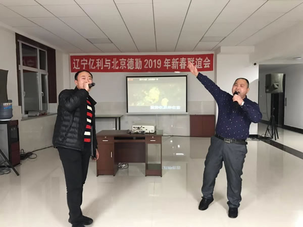 值此新春佳節(jié)之際,作為東道主的我們?yōu)榱吮硎緦?duì)德勤公司同事的熱烈歡迎與新春祝福,當(dāng)晚,在領(lǐng)導(dǎo)的安排下,我公司舉辦了一場(chǎng)“遼寧億利與北京德勤2019年新春聯(lián)誼會(huì)”。聯(lián)誼會(huì)上大家積極踴躍的表演才藝,機(jī)電設(shè)備部部長(zhǎng)潘曉閣和機(jī)電設(shè)備部賀善強(qiáng)師傅高歌一首《眾人劃槳開大船》將整個(gè)聯(lián)誼會(huì)推上了高潮。