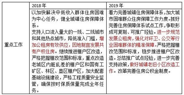 解讀:與2018年相比,此次會議中將租賃住房分成了市場化租賃和政策性租賃兩個領(lǐng)域。其中,政策性租賃住房首次提到。