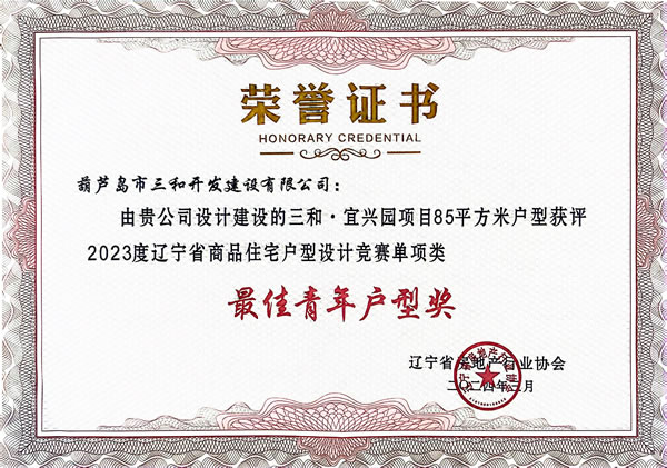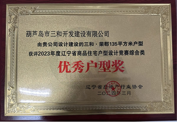 本次競(jìng)賽以“好房子服務(wù)美好生活”為主題,活動(dòng)一經(jīng)發(fā)布,我單位市場(chǎng)開發(fā)副總凌旭作為主要設(shè)計(jì)人,聯(lián)合其它設(shè)計(jì)人員積極申報(bào)戶型設(shè)計(jì)方案。經(jīng)過(guò)專家評(píng)審,我單位獲得1項(xiàng)綜合類獎(jiǎng)、2項(xiàng)單項(xiàng)類獎(jiǎng)。其中,應(yīng)用于三和榮郡居住小區(qū)二期工程的135平方米戶型,榮獲綜合類“優(yōu)秀戶型獎(jiǎng)”;應(yīng)用于三和宜興園小區(qū)工程的85平方米戶型,榮獲單項(xiàng)類“最佳青年戶型獎(jiǎng)”;應(yīng)用于三和恬園小區(qū)二期工程的184平方米戶型,榮獲單項(xiàng)類“最佳適老戶型獎(jiǎng)”。