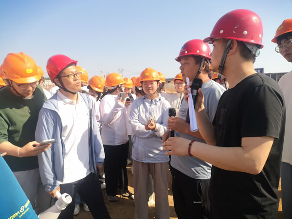 施工現(xiàn)場(chǎng),于海部長(zhǎng)向同學(xué)們?cè)敿?xì)介紹了項(xiàng)目工程概況、工程進(jìn)度、設(shè)計(jì)理念等內(nèi)容,段文博向同學(xué)們介紹了施工工藝和當(dāng)前土方回填、基礎(chǔ)施工等情況。參觀過(guò)程中對(duì)同學(xué)們提出的問(wèn)題進(jìn)行現(xiàn)場(chǎng)解答,確保理論與實(shí)踐融合,讓參觀學(xué)習(xí)走實(shí)又走心。