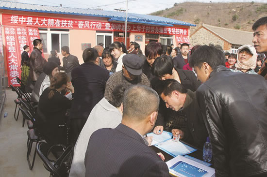 2016年3月22日,我公司參加了由縣人大主辦,縣勞動(dòng)和社會(huì)保障局、加碑巖鄉(xiāng)政府、扶貧辦、新聞中心承辦的“綏中縣人大精準(zhǔn)扶貧春風(fēng)行動(dòng)暨加碑巖鄉(xiāng)上房子村勞務(wù)輸出專場(chǎng)招聘會(huì)”。 縣委書記、東戴河新區(qū)黨工委書記劉旭東參加并作講話?h人大常委會(huì)主任王躍明宣布招聘活動(dòng)開始?h委副書記王興華,縣委常委、紀(jì)委書記項(xiàng)繼飛,縣人大常委會(huì)副主任杜鐵耕、郭勇,副縣長(zhǎng)袁伶,縣長(zhǎng)助理邱玉峰及相關(guān)部門負(fù)責(zé)人參加招聘會(huì)開幕式,上房子村及周邊6個(gè)村屯上千人參加了招聘活動(dòng)。